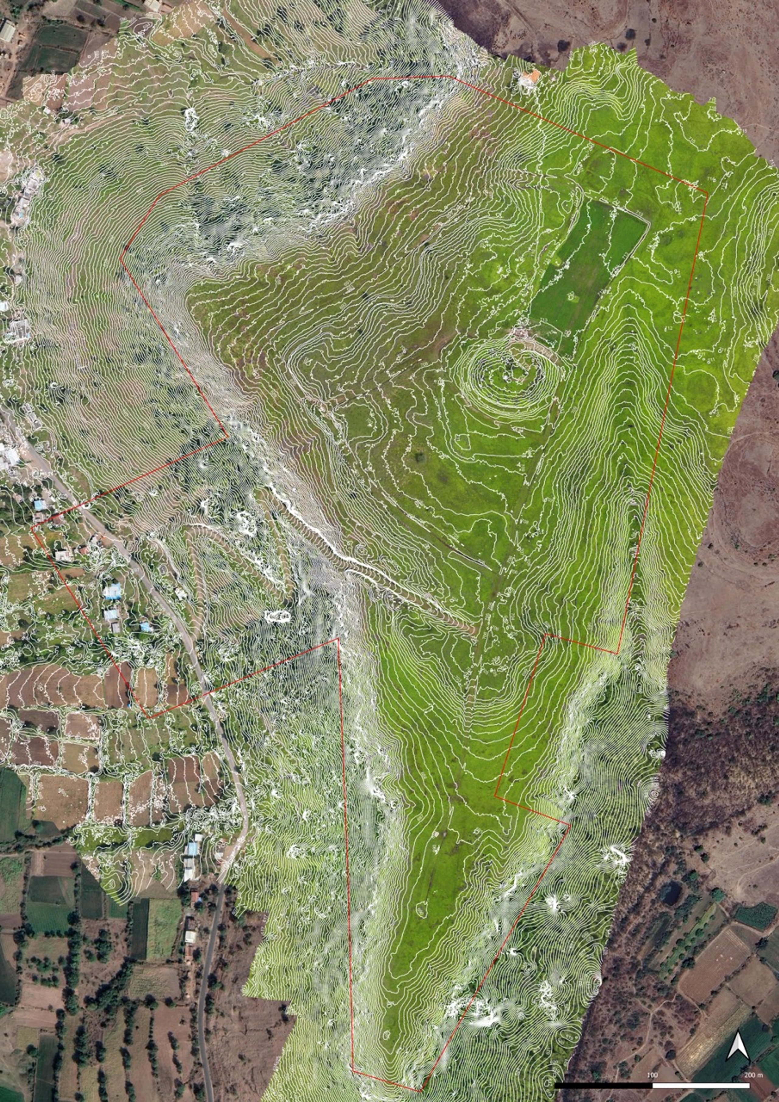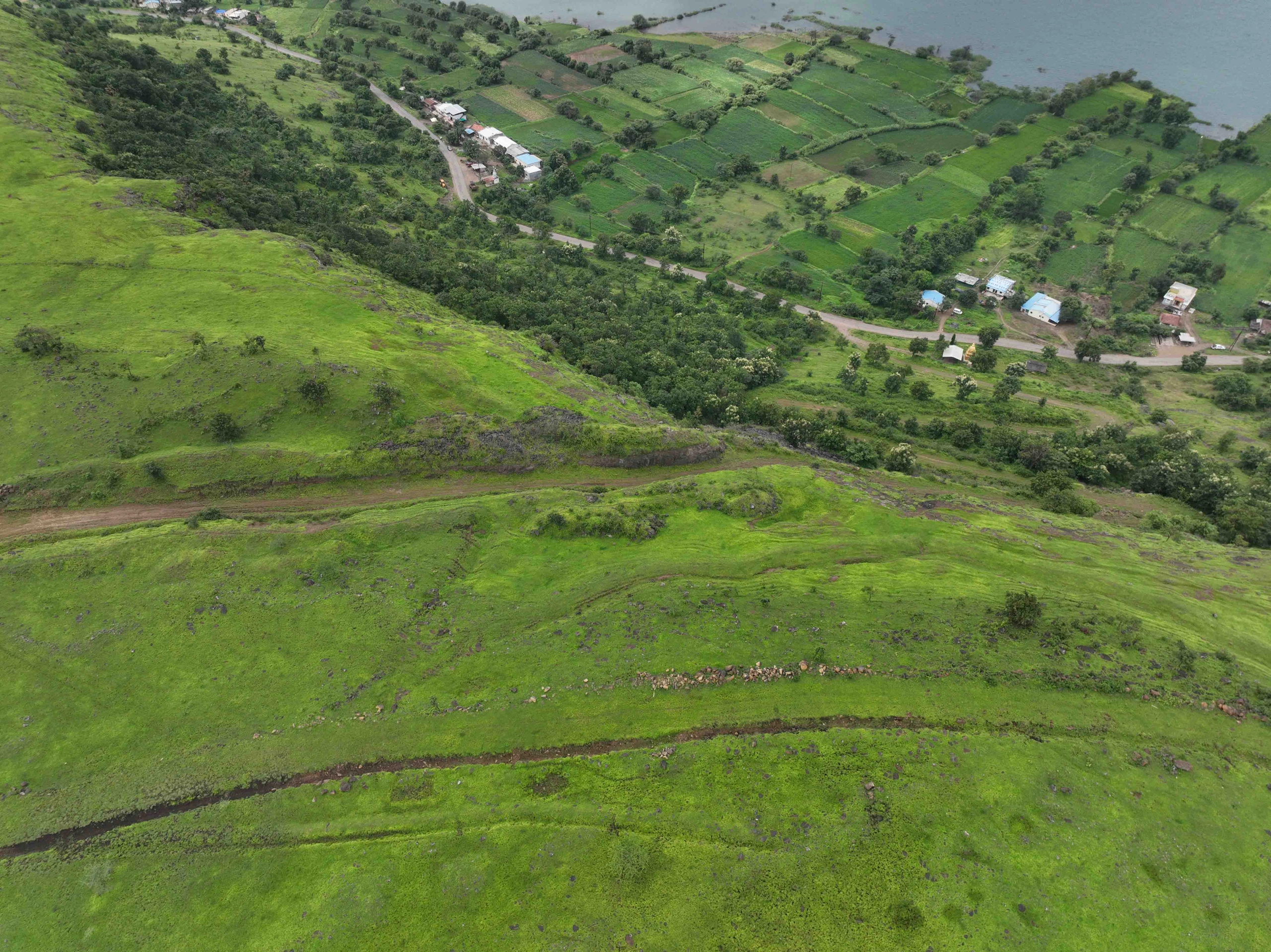 The hill consists of two plateaus which are overgrazed and are prone to high erosion that washes away the nutrient rich soil present in certain pockets of the existing land. The plateaus are largely devoid of any dense vegetation and are seasonal grasslands with a few trees dotted sparsely across the landscape. The steep slopes of hill are characterized by patches of dry deciduous forest and scrub vegetation, which are denser in the valleys and sparse on the ridges. This band of vegetation forms a transitional zone between the plateau and the agricultural terraces that dominate the lower slopes.
