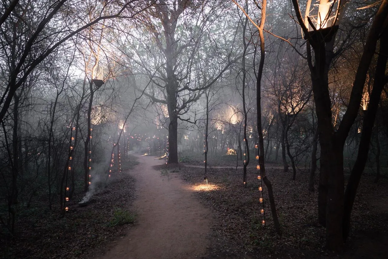 Informed by regenerative principles and ethics of permaculture, the project aims to plug into the sanctuary and work with the forest department in order to inform land management and restoration practices and focus on deeper forms of climatic adaptation and resilience. Through a series of on-going experiments, the project is transforming the ground into a biological repository, an edible and medicinal forest, a living archive and a micro climatic centre of research, that serves as a test bed and experimental ground to plan more effectively for the wider ecosystems of The project is driven through an urgent need to redefine land use, inquire into ways of ensuring food security, and focus on deeper forms of climatic adaptation and resilience to the slow violence of ecological degradation. Through interpreting the ecological implications of our design agency as an inherently political act, the laboratory aims to interact with local and non local institutions, bringing in diverse vectors of knowledge, serving as a stronghold for decentralised territorial planning, the production / dissemination of knowledge, and research. The project is designed to serve as a model, using remote sensing technologies, data driven ecology, building capacity, working towards heightened ecological awareness, and through engaging with the local population. These vital operations may well carve out new potential pathways to rewild cities, boost ecological functioning, sequester carbon in productive soils, harvest energy, conserve water and establish a renewed symbiosis between the urban and rural. Hidimbavan has hosted many educational and cultural events over the course of years to bring about new forms of collaborative learning to Ahmedabad.