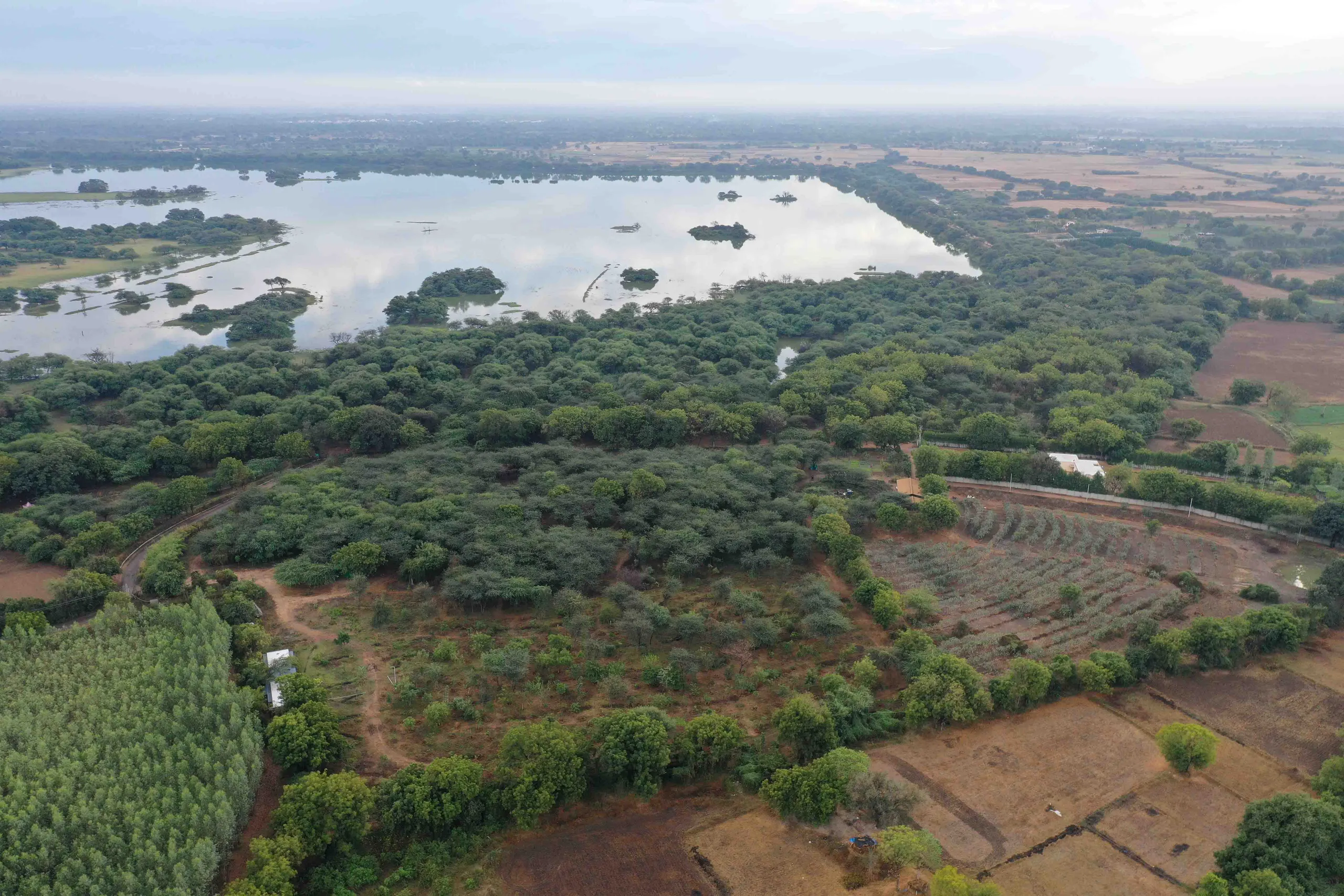 Hidimbavan is a contemporary ecological design laboratory, situated within the eco sensitive zone of Thol Bird Sanctuary near Ahmedabad Gujarat. It is a semi-arid space containing thorny scrub type vegetation and dry deciduous forests, dominated by Acacia nilotica and Vachellia tortilis trees. The project is driven by land management interventions to capture carbon in productive soils, check erosion, harvest energy and conserve water, and an inquiry into ways of ensuring food security. Described as the forest lair of the demon king Hidimb in ancient scriptures, Hidimbavan is a semi arid space, containing thorn scrub type vegetation and dry deciduous forests. Although primeval forests have all but disappeared in this part of the world, we can use this myth to piece together what kind of life inhabited this space before human intervention.