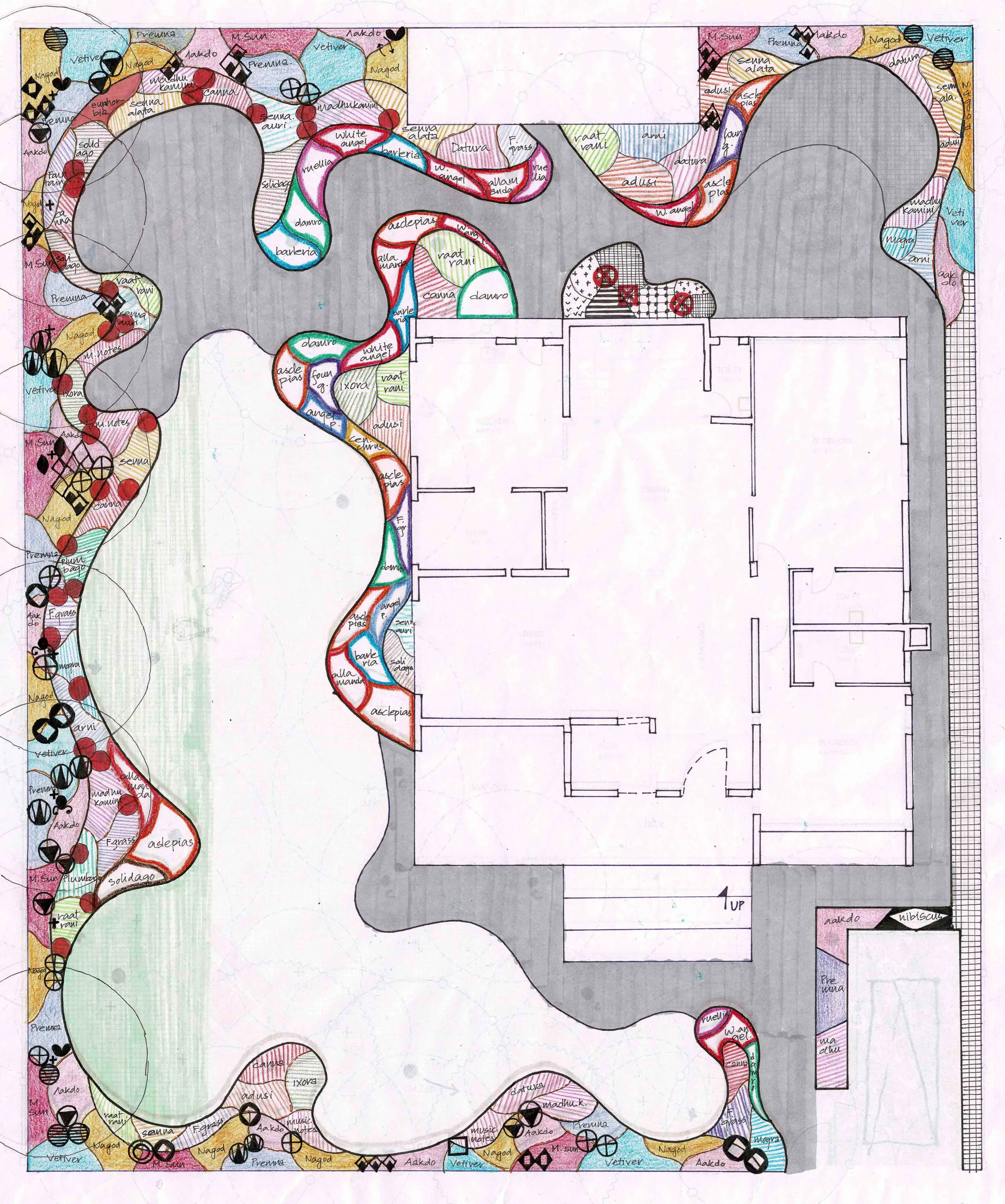 This landscape design approach for this project replaces a conventional lawn-dominated thinking with a garden designed for increased biodiversity and functionality. The planting strategy incorporates lesser-known tree species, along with an understory of seasonal flowering plants and ornamental grasses, introducing a dynamic palette of colors and textures throughout the year. The selection of species ensures year-round variation, with bursts of color from flowering shrubs, contrasting foliage tones, and seasonal blooms.